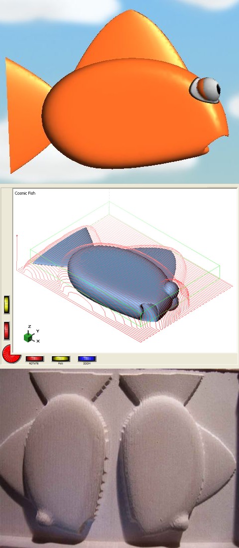 - Een bitmap file (JPG, GIF, BMP) omzetten naar een 3D relief en daarover freesbanen berekenen.